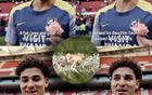 小蜘蛛在一场公开训练中献花,悼念一位马竞球迷最近去世的女儿